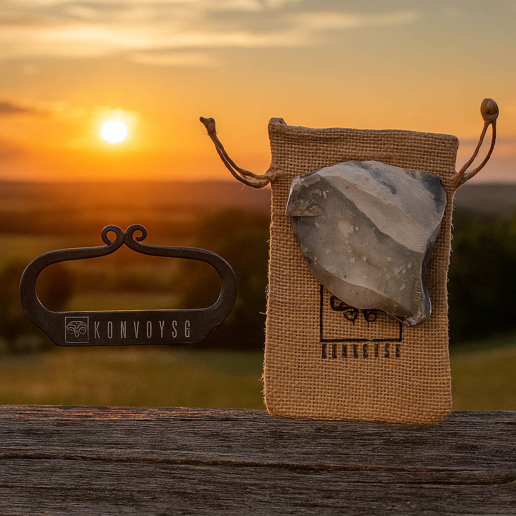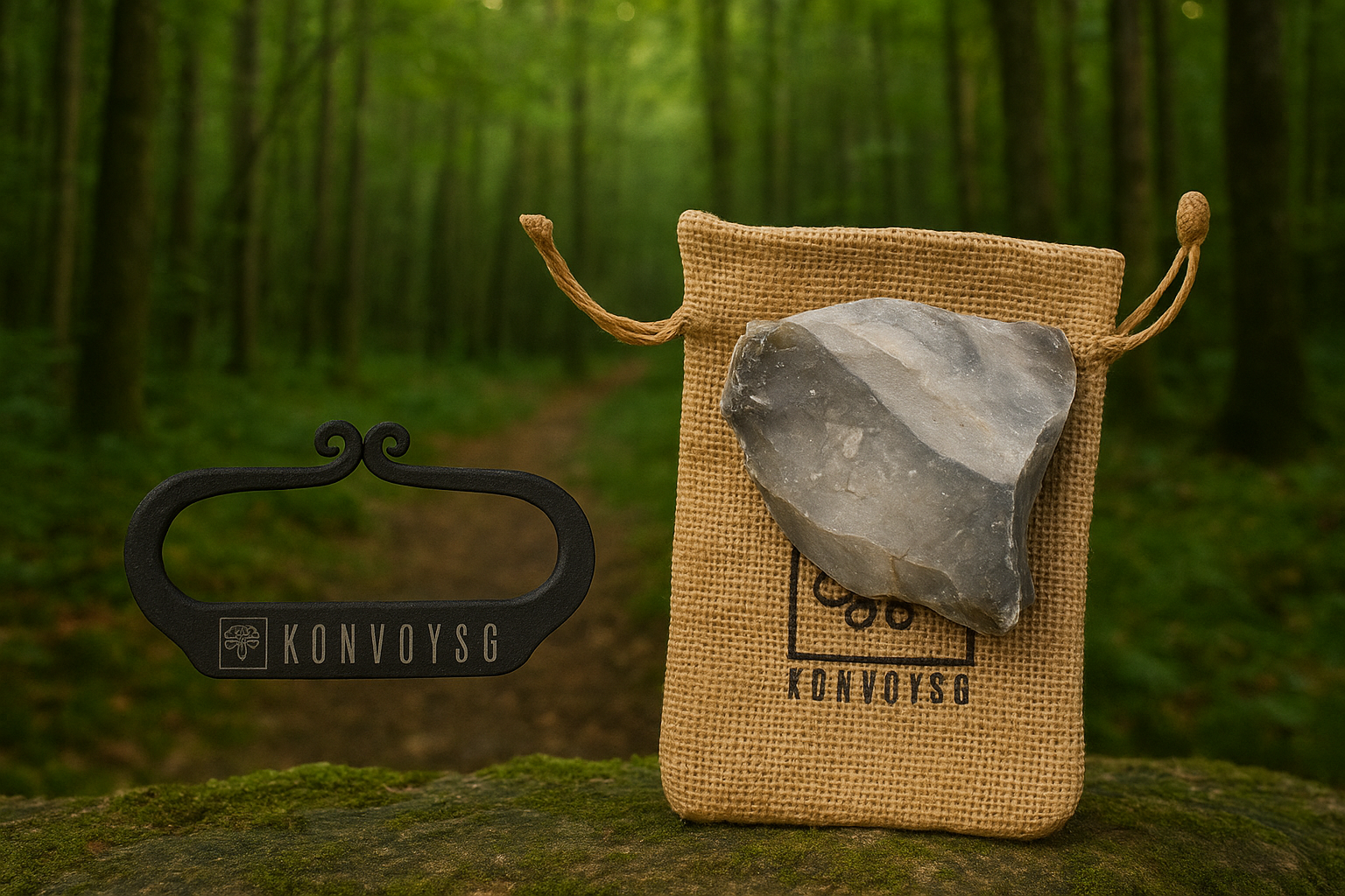 Rediscover the traditional art of fire-making with the KonvoySG Flint & Steel Striker Kit. Built for bushcraft, survival, and outdoor enthusiasts, this striker delivers bright sparks using genuine English flint and a hand-forged carbon steel striker. Compact and reliable, it works without fuel, batteries, or matches—just skill and technique.